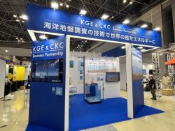会期中は傾動自在を始めとした海上ボーリングについて展示を行いました。また、「洋上風力発電事業における地盤調査」の題目で出展社プレゼンテーションを行いました。