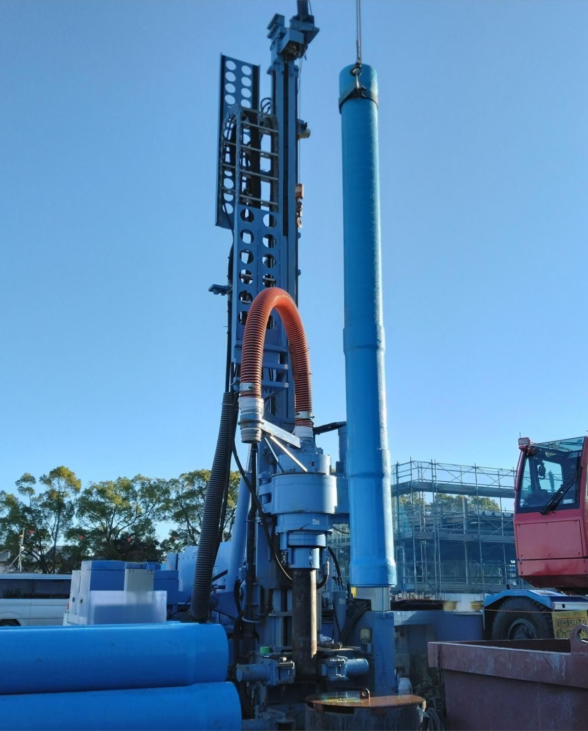 自社開発した「傾動自在型試錐工法」や鋼製櫓などの海上調査技術を駆使した地質調査を開始